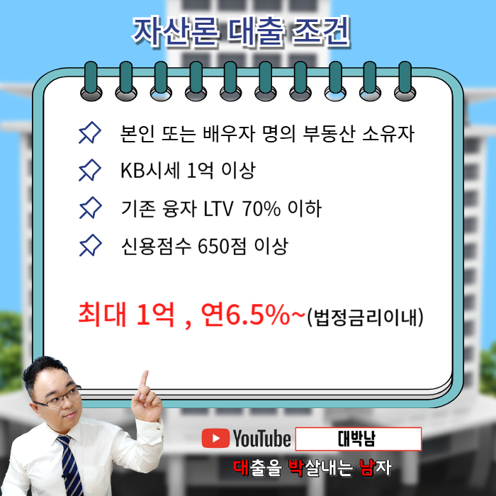 장점: 시중 신용대출보다 훨씬 높은 한도와 낮은 금리를 적용받을 수 있어, 자가를 보유하신 분들께 최적의 선택이 될 수 있습니다.